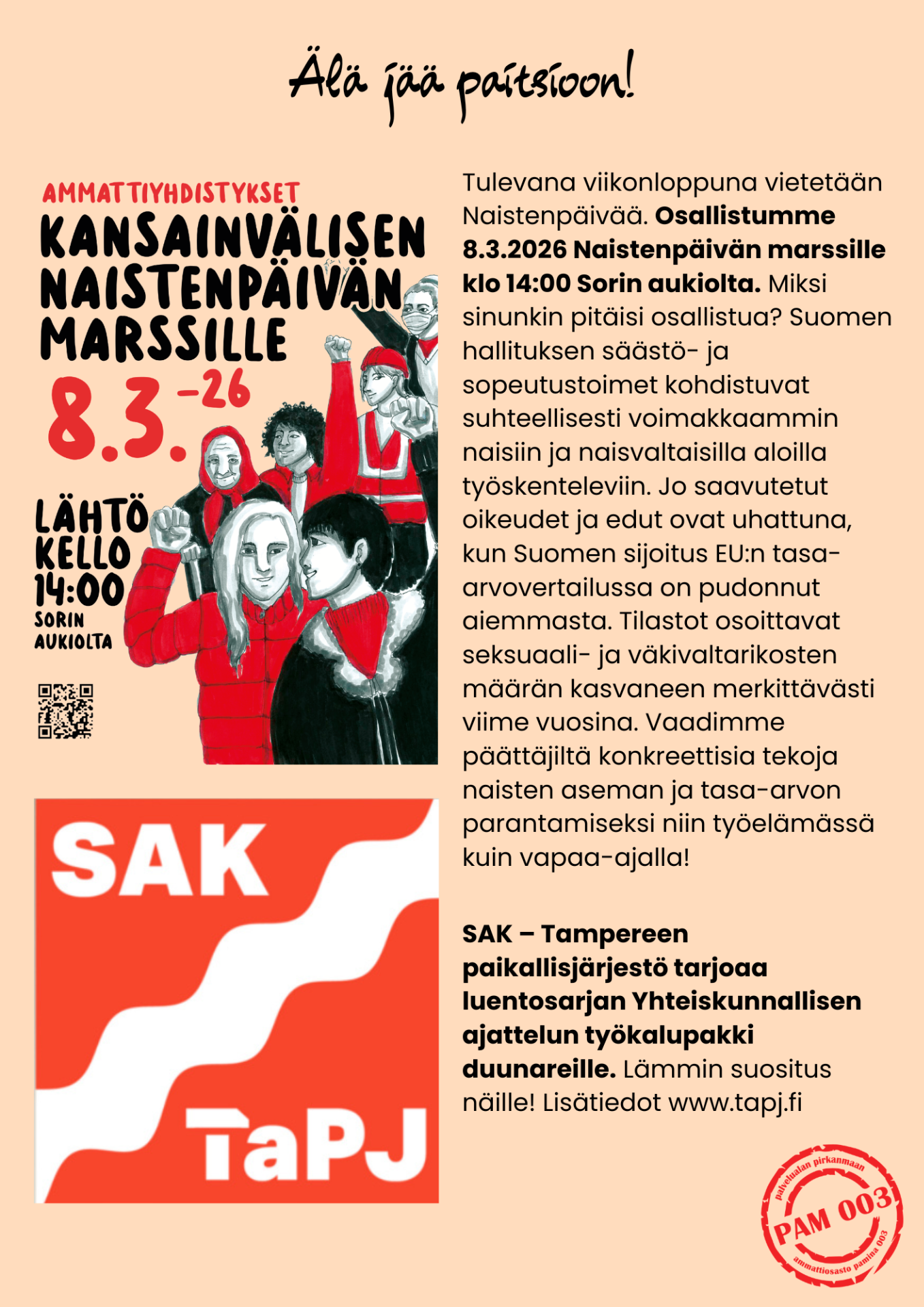 PAM 003 on mukana Me olemme liitto - Särkkäpäivässä 17.5.2025.